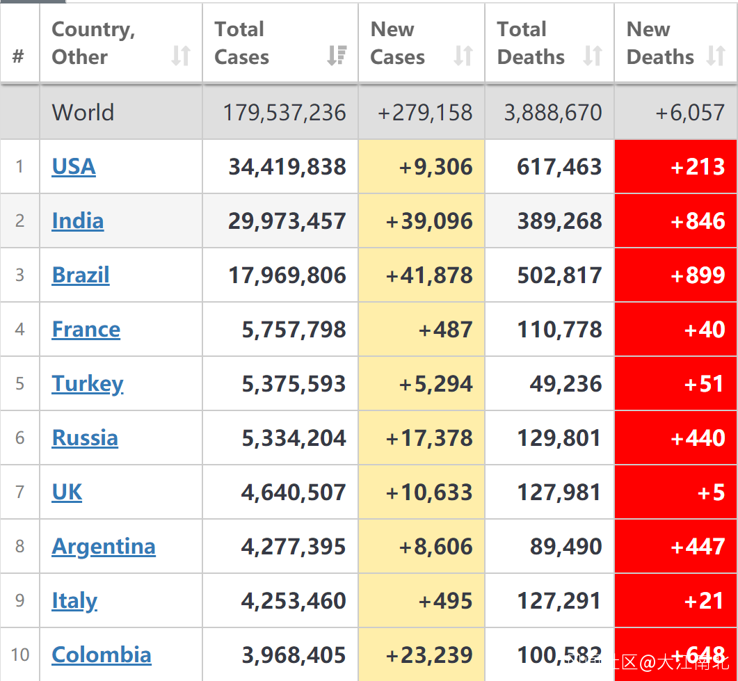 6月21日,全球新增新冠確診279,158例;累計確診1.795億例;新增病亡6,057例;累計病亡388.87萬例。