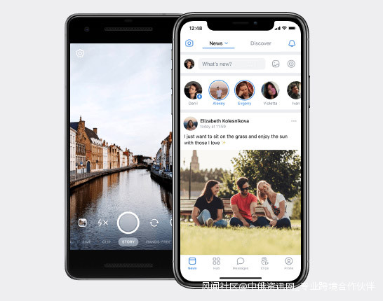 VK手機客户端(注:原VKontakte是一個俄羅斯社交平台,類似於Facebook、INS,由於其設計風格以及功能都與美國Facebook十分相似,因此VK也經常被稱為“克隆Facebook”。)