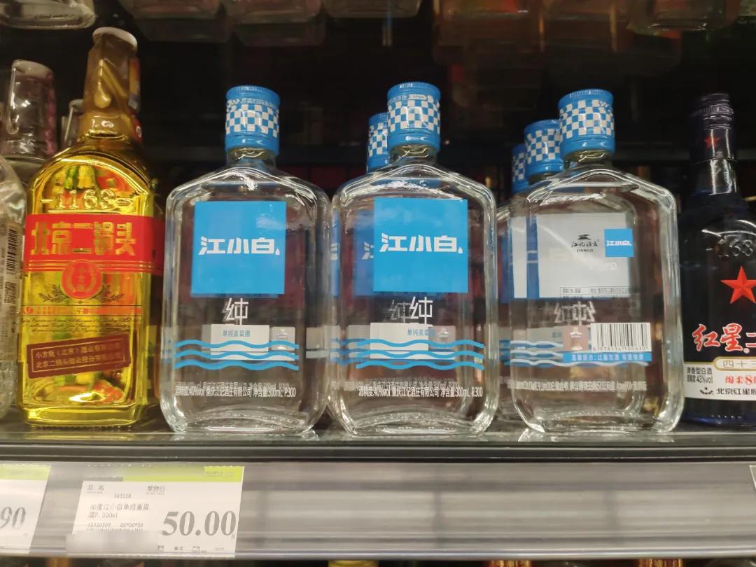 ▲ 在商超內,300ml的江小白單價50元,500ml的牛欄山二鍋頭單價21元