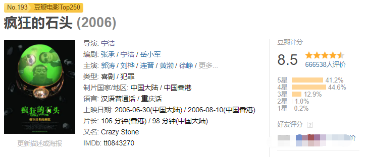 在那個還是《英雄》《無極》這些中國式大片佔領高地的時候,《瘋狂的石頭》卻獨闢蹊徑,走了一條完全相反,但成功的路子。