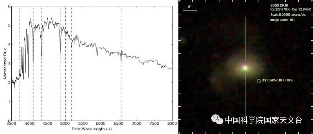 圖1. E+A 星系光譜與測光圖像(圖源:楊海峯和SDSS)