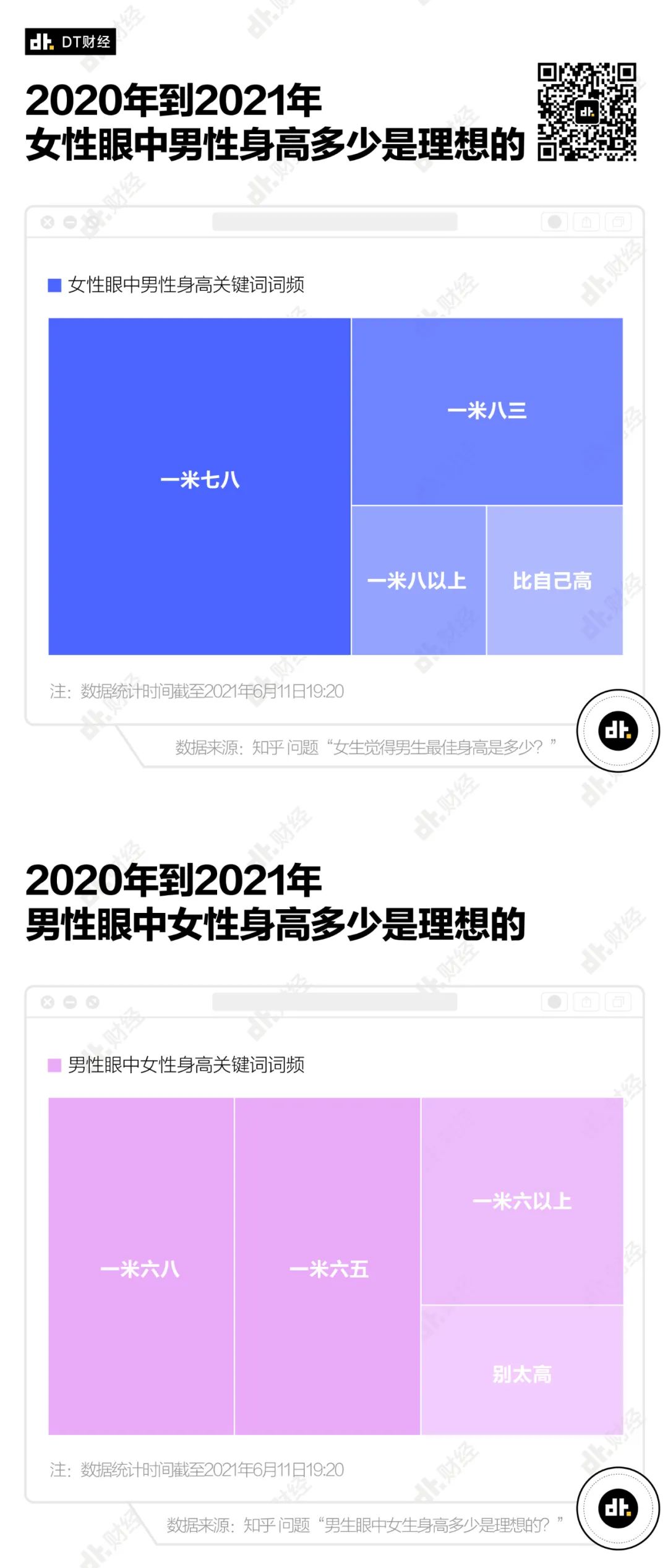 不過DT君也注意到,這個身高雖然已經與2015年人們心中的理想身高堪堪持平,但與當前流行的“180配168”還有不小差距。