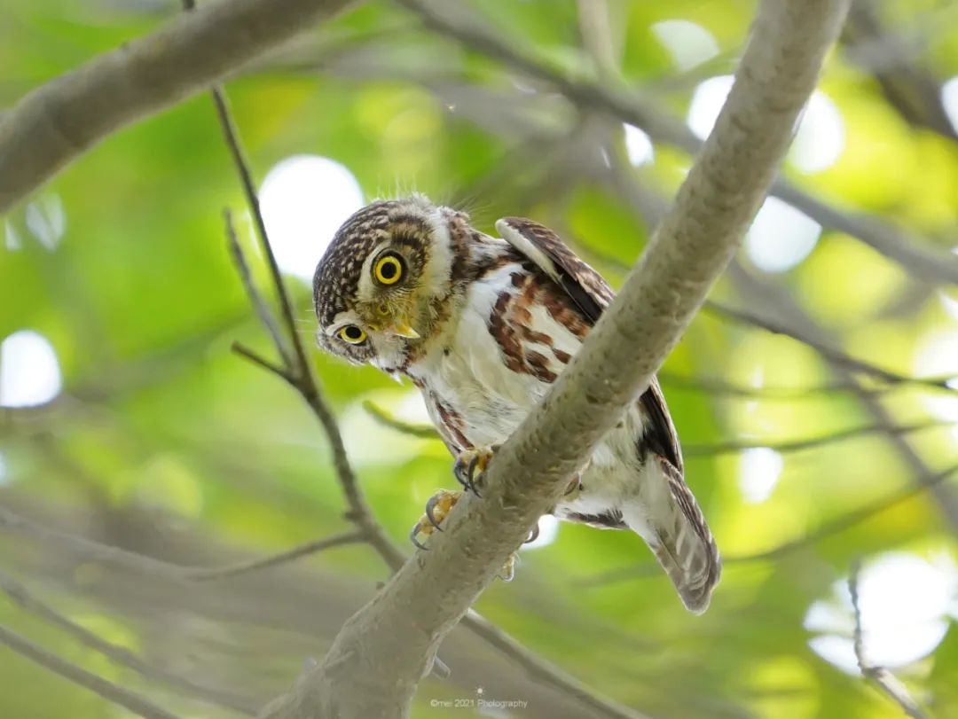 説起猛禽,一般都會想到如金雕、禿鷲、蒼鷹一樣的大中型鳥類,高若孩童,羽翼寬廣。不曾想,有一種體長如麻雀、重若雞蛋的嬌小鳥類,也入選猛禽,與金雕、禿鷲、蒼鷹排列在生物鏈的第一梯隊。它就是本文的主角——領鵂鶹。