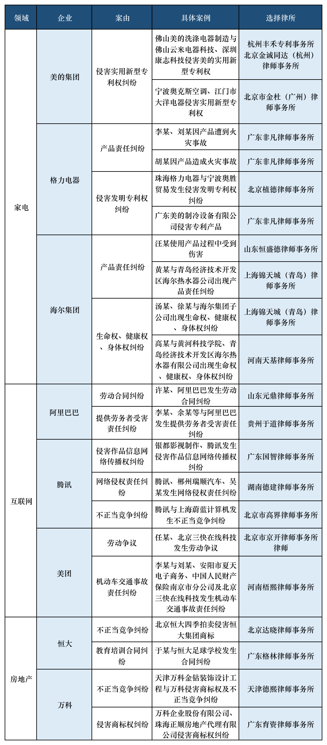 為此,我們調查了房地產、互聯網和家電三大領域內的TOP3企業,看看他們究竟選擇了什麼樣的律所。