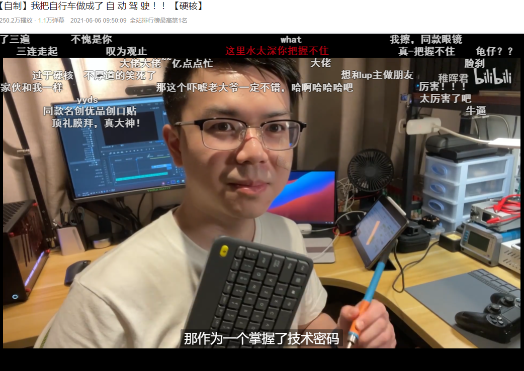 於是耗費四個月的週末時間,讓稚暉君成功出圈的一條視頻出現在 B 站上:我把自行車做成了 自 動 駕 駛 !