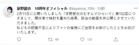 事後,茅野愛衣的道歉只有輕飄飄的一句“認識不足”。
