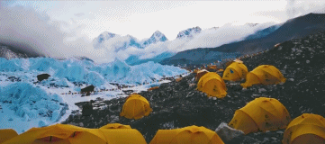 一羣穿着登山服的人,神色緊張,如臨大敵。