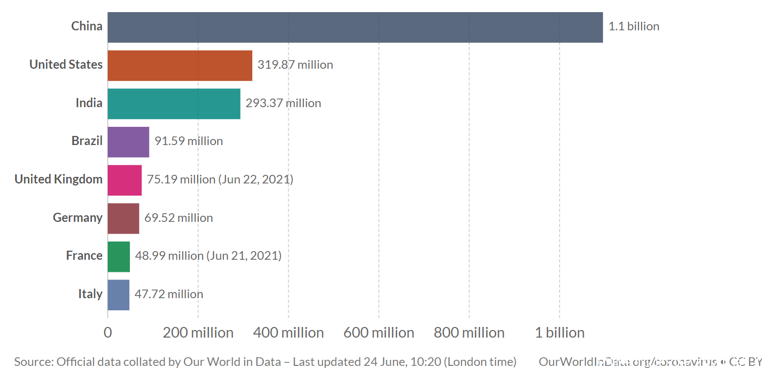 6月24日全球新冠疫情及疫苗接種更新:中國大陸累計接種近11億_風聞
