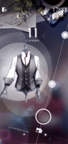 而通過戰鬥和劇情,獲取靈感後,遊戲會讓玩家塗抹設計稿,並以音遊的玩法展現設計單品的製作過程。音遊難度不高,主要作為一個豐富體驗的小玩法存在,其紐扣、剪刀、拉鍊的UI也貼合了「設計師」的題材。