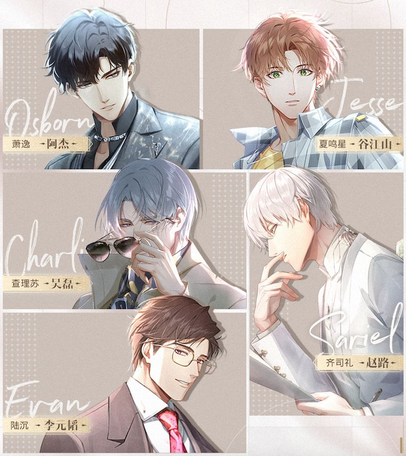 有了可發揮的劇情框架後,男女主的人設尤為重要。先從美術上看,《光夜》的人設不同於多數乙遊的日式二次元畫風,角色偏向寫實風格,男主大多是硬朗形象,更像是韓漫中常見的類型。