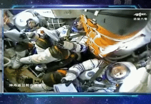 6月19日,新聞表示早上7:07就拍到了3名航天員起牀工作的樣子,大家都比規定時間起得早,可能是捲起來了。