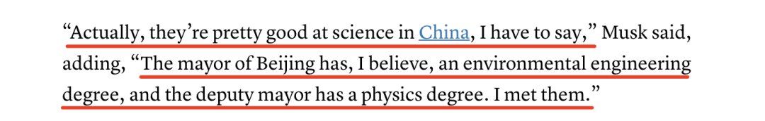 訪問中國時,他曾大肆誇讚中國的官員們懂科學。會見領導時,他也會説,“我非常熱愛中國,願意多到這裏來”,“特斯拉將力爭把上海工廠建造成世界最先進的工廠之一。”