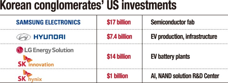 文在寅上個月訪美,三星、LG、SK、現代的四大韓國集團一共談下了394億美元的生意,在美國投資建設晶圓廠、電池廠、新能源車、充電基建等項目。