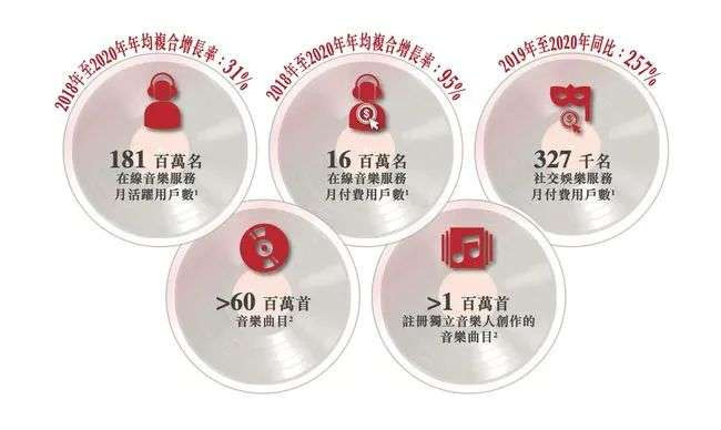 據其招股書顯示:截至2020年12月31日,網易雲擁有超6000萬首音樂曲目,但騰訊音樂手裏那1%核心版權內容,是網易無法觸及的核心資源,包括周杰倫、五月天等老牌華語歌手,BIGBANG、BLACKPINK、酷玩樂隊等國內外流行歌手,這些未獲得版權部分曲目,佔有了大量音樂用户羣。