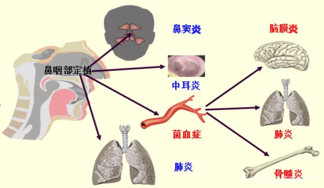肺炎球菌還可定植在人的鼻咽部,當人體身體抵抗力下降時可發生自體感染。