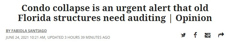 我們今天所經歷的恐怖事件應該成為一個緊急警報,即佛羅里達州的舊建築需要政府進行檢查和更嚴格的監督。