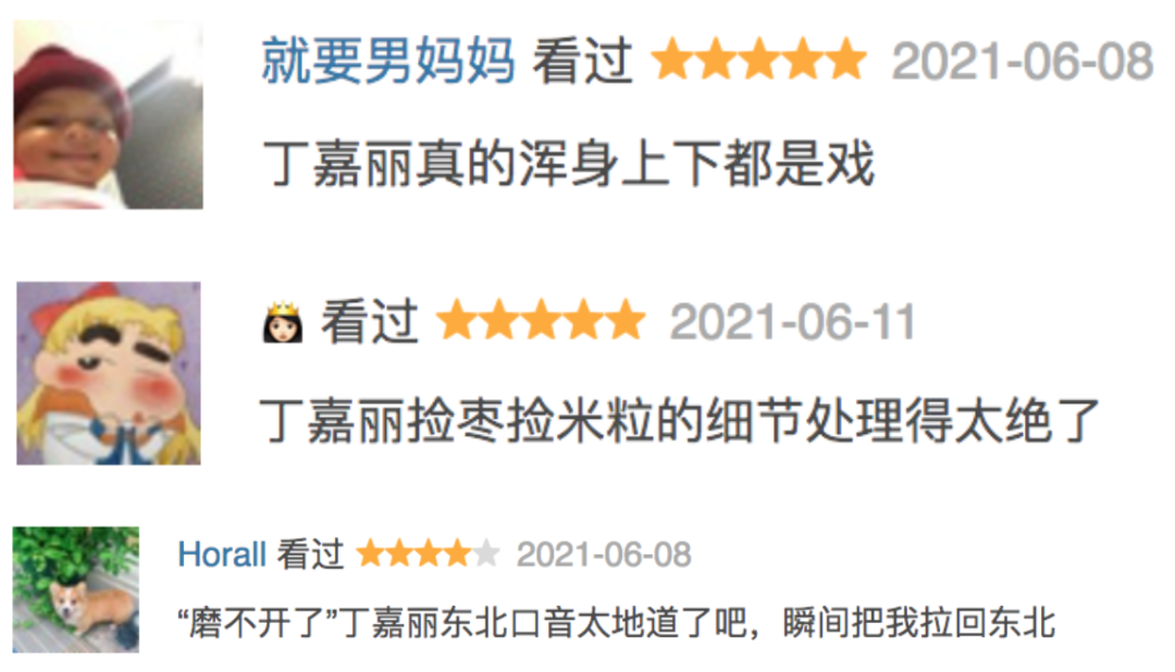 許多網友都對丁嘉麗的表演讚歎有加,渾身上下都是戲,是為數不多的亮點。