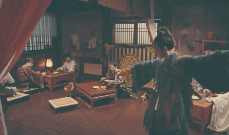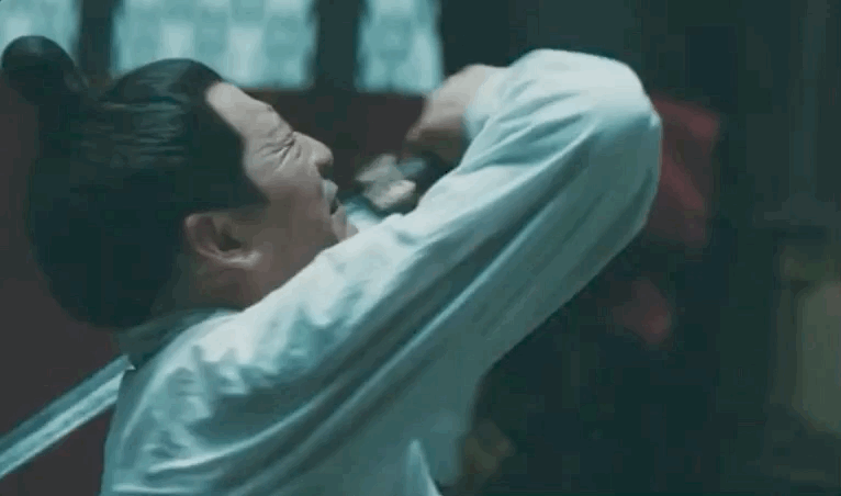 鏡頭一轉,某位官員從噩夢中驚醒,像是失了魂似的徑直走向利劍,隨後自刎: