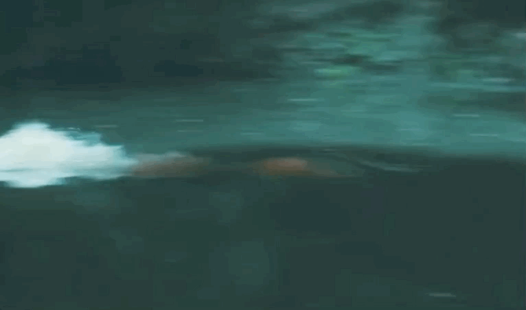 鏡頭拉近,河中似乎潛伏着一隻巨大的猛獸……