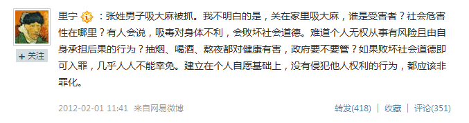 而這次,同樣有吸毒前科的寧財神難得開了口,只不過他把矛頭指向了“大麻合法化”。
