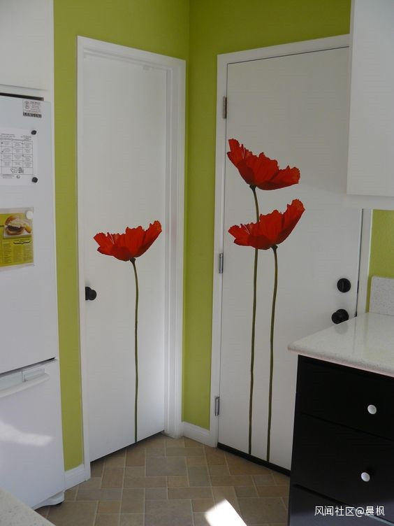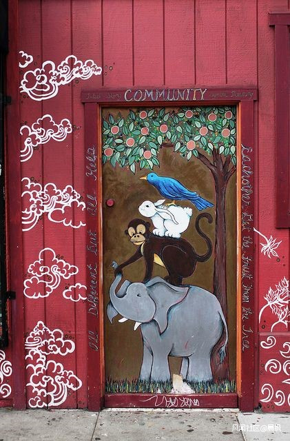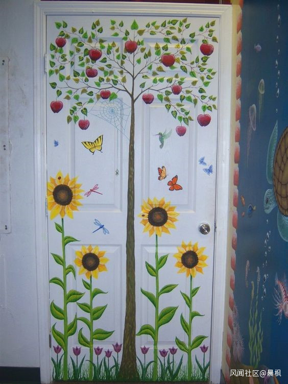 門就是門,一般刷個顏色已經很出彩了。但門板要是作為畫布畫上畫,其實可以把本來徹底平淡的東西變為藝術品,真正的化平淡為神奇。最重要的是,誰家都可以做,誰家還沒一個門啊。請專業的人來畫當然可以,讓孩子自己塗鴉也行,自己動手更贊。圖案更是豐儉由人,隨你便。