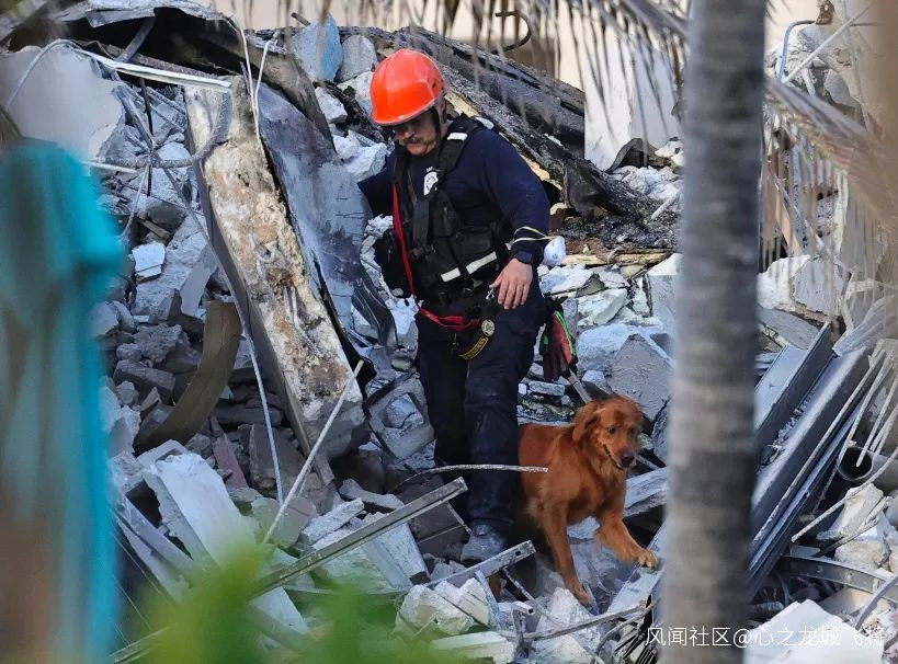 而且從廢墟中,不斷有火勢蔓延,現場不得不人工灑水。再加上邁阿密的夏天,一到下午就是一場暴雨,也影響了搜救工作的進度。