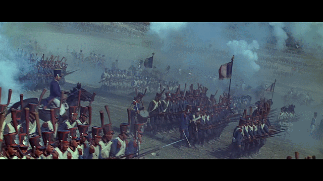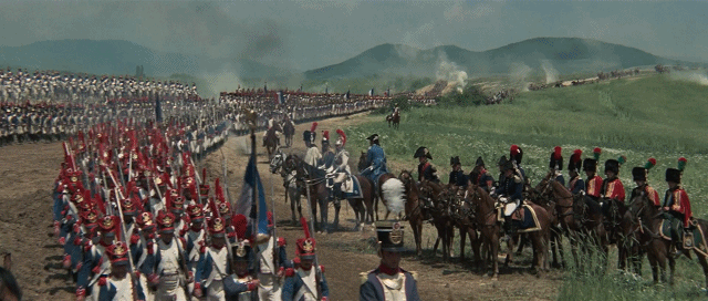 最牛批的是,你不是要還原最真實的戰爭場面嗎?蘇聯軍方直接調給謝爾蓋12萬現役軍人來充當羣演。所以,蘇聯版《戰爭與和平》的戰爭場面,極其宏大。私以為,這是今天推薦的三部電影中,最能體現戰爭美學的一部。