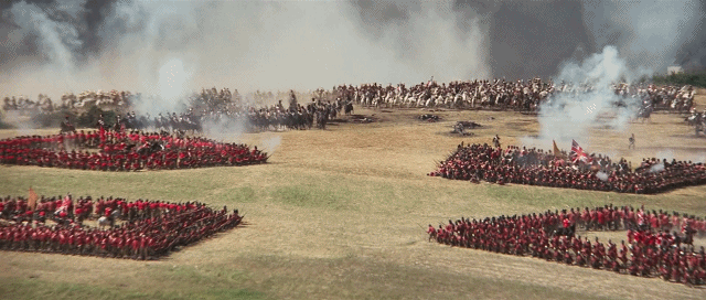 電影還呈現了法軍騎兵衝擊英軍空心步兵方陣的經典場面,也是相當壯觀。正是這個戰鬥節點,讓英軍拖住了法軍的攻擊,消耗了法軍大量有生力量,並等到了普軍的支援,最終將法軍擊潰。