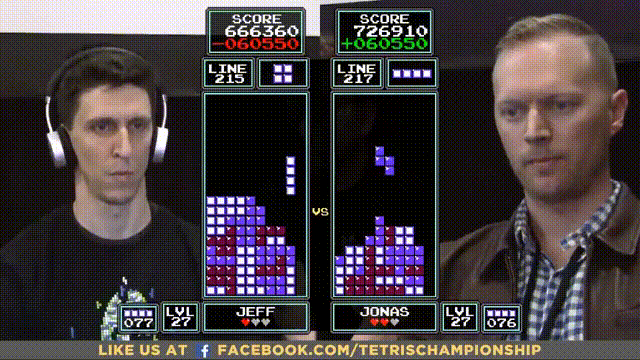 就這樣,俄羅斯方塊世界大賽(CTWC)誕生了。比賽者使用原汁原味的CTR「大屁股」小電視、NES遊戲機和手柄,從第18級開始(遊戲允許的最高初始難度),一局結束後分數最高的玩家獲勝。首屆CTWC總共有八名選手參加。其中,五名世界冠軍獲得了賽事直邀名額,另外三位則是通關選拔而出。決賽中,Jonas Neubauer擊敗Harry Hong獲得了冠軍。