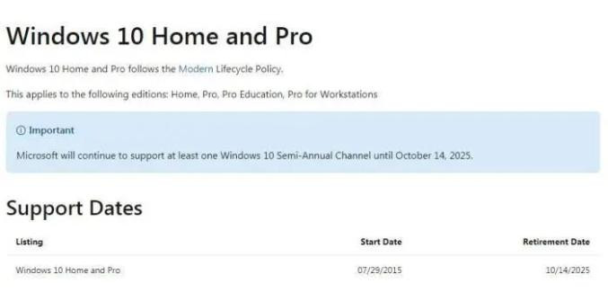 此前,微軟公司網站就發佈消息稱,將於2025年10月14日終止對Windows 10操作系統的支持,包括專業版和家庭版。