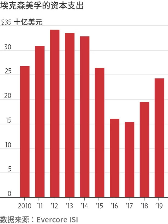 投資銀行Evercore ISI的數據顯示,2009年至2019年期間,埃克森美孚的資本支出為2610億美元。
