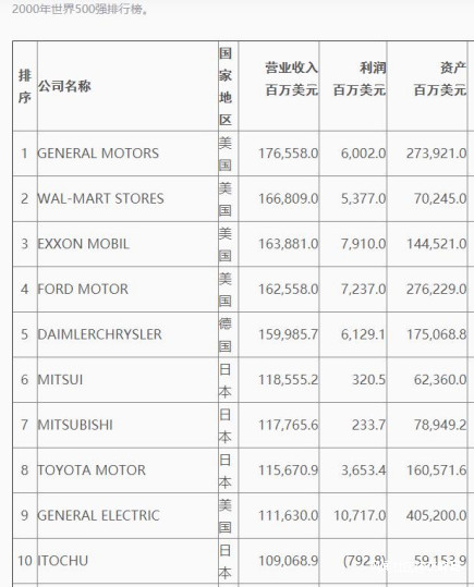 2000年世界500強排行榜前十