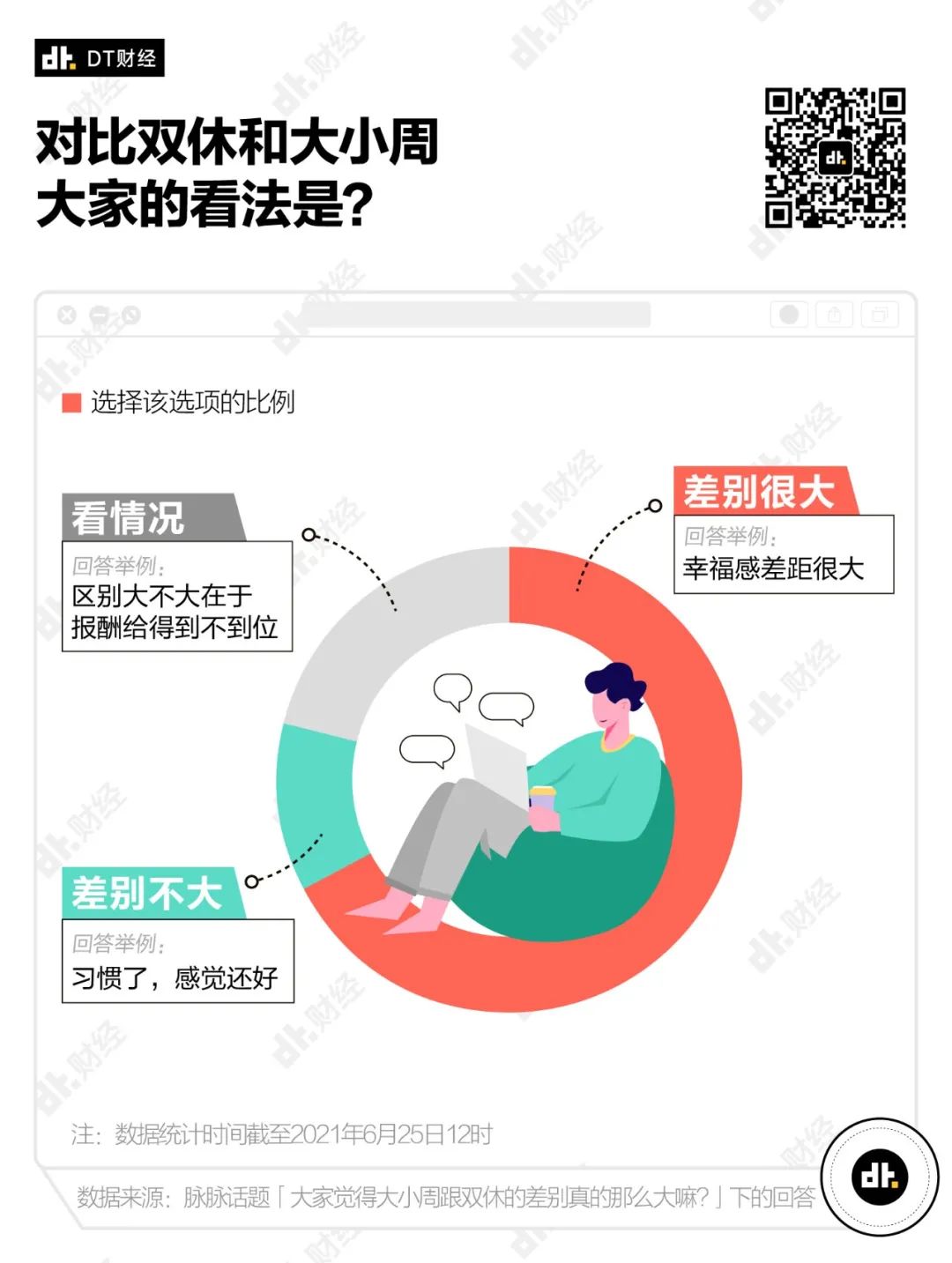 在脈脈上,有人曾提出疑問:「雙休和大小周真的差別很大嗎?感覺一個月也就少休息了2天。」我們採集了這條問題下的評論,有超過一半的人都認為「差別很大」。
