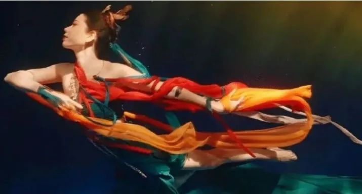 端午的水下舞蹈《祈》洛水仙子裙帶飄舞,再現了“翩若驚鴻,婉若游龍”的視覺盛宴,天光水影之間皆是詩意。