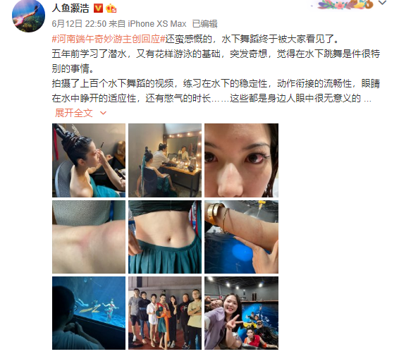 就拿這次的水下舞蹈《祈》來説,水下節目是所有表演中最難的,而且在晚會上表演還是首次。