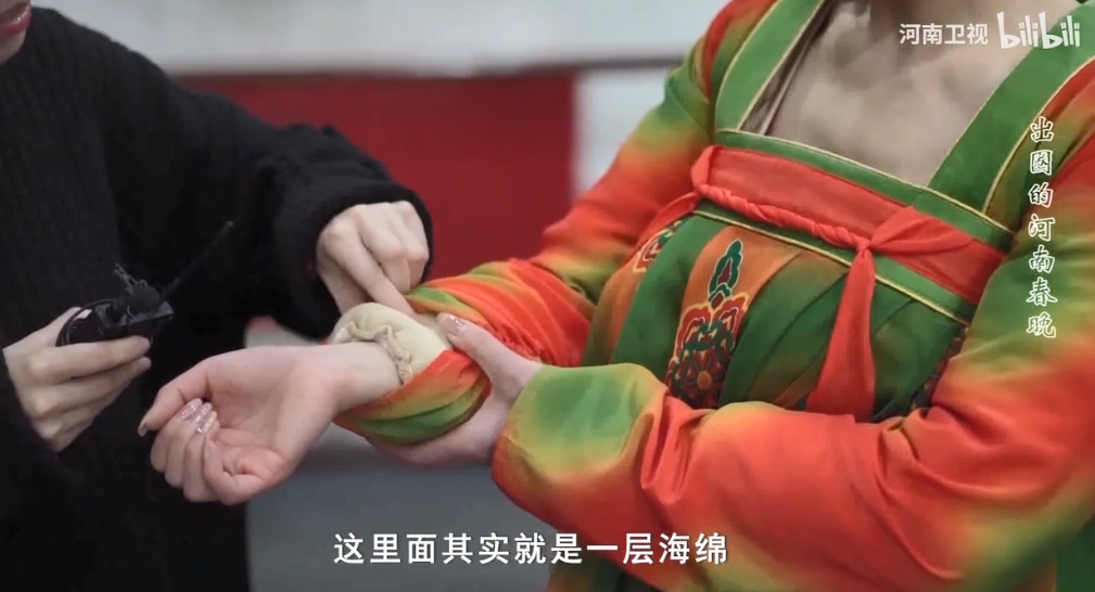 節目的每一個細節,都是100%的中國元素。《唐宮夜宴》演員的服裝顏色是唐三彩,妝容是唐朝的“斜紅”;