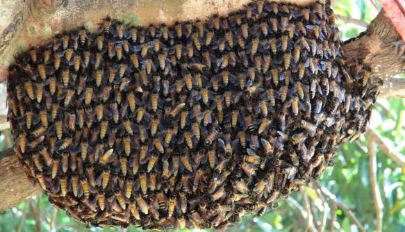 東方蜜蜂利用集體防禦策略結團殺死凹紋胡蜂