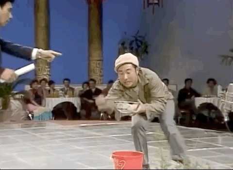 等他下了舞台,演員機智地救了場,陳佩斯仍然是捱了一頓揍。