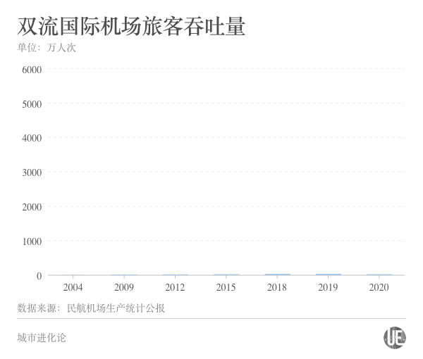 民航局統計數據顯示,雙流國際機場旅客吞吐量在2004年突破1000萬人次後,迅速攀升、連跨台階,2018年躋身“5000萬俱樂部”。去年疫情影響下,雙流國際機場旅客吞吐量也超過了4000萬人次,僅次於廣州白雲機場。