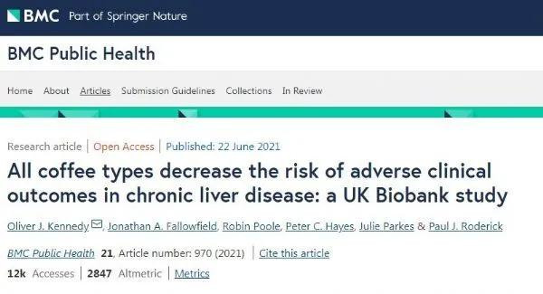 近日,一篇發表在國際雜誌BMC Public Health上題為“All coffee types decrease the risk of adverse clinical outcomes in chronic liver disease:a UK Biobank study”的研究報告中,來自南安普頓大學等機構的科學家們研究了飲用咖啡包與慢性肝病的關聯,包括脱咖啡因咖啡、速溶咖啡和研磨咖啡。