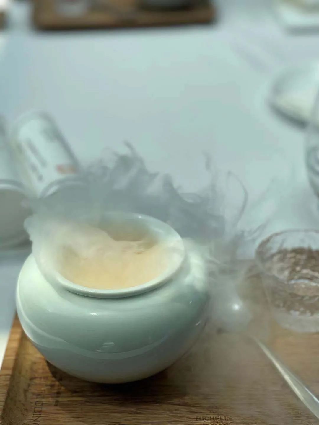 第一道熱菜是一碗暖胃的松茸湯,採用的是日式土瓶蒸的方式製作。