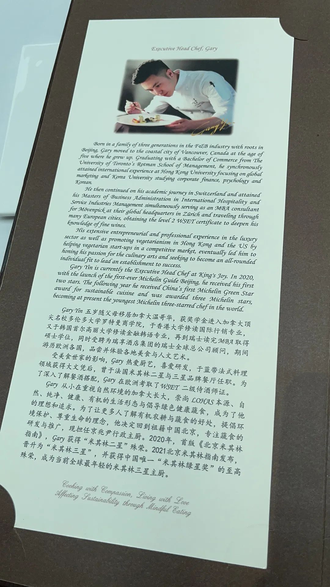 點了菜,菜單上有三顆米其林星星和一顆米其林綠星: