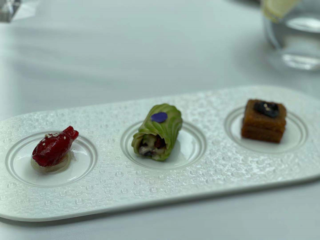 中間是牛油果卷,沒啥記憶點。而右邊的茨飯糕上放了黑松露,吃起來滿滿碳水的香味,還有松露異香,還不錯。