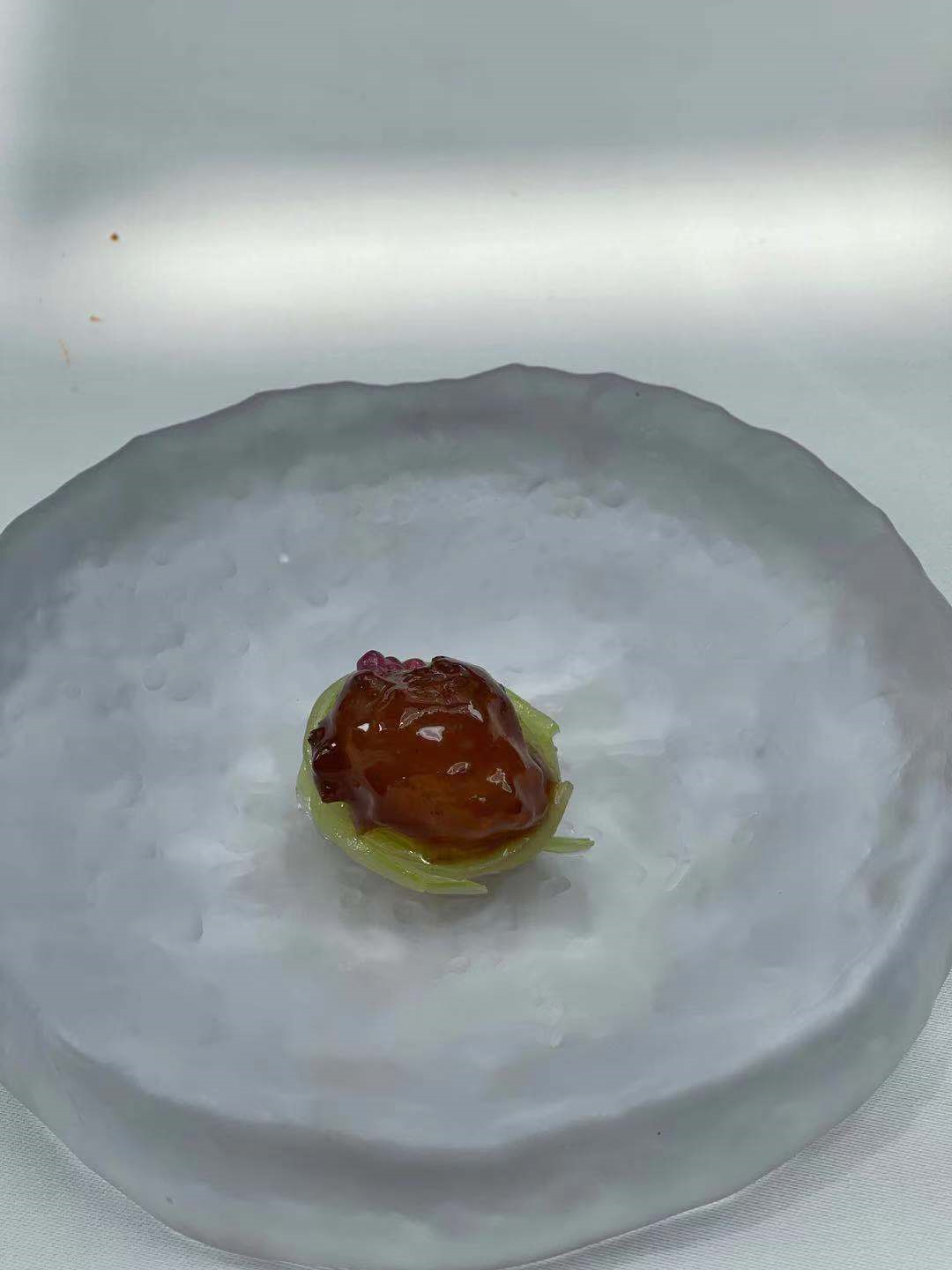 湯包裏用雞蛋做出了金黃色,然後用白松露模仿出了蟹黃的鮮味,再用植物油做出了蟹油的感覺。