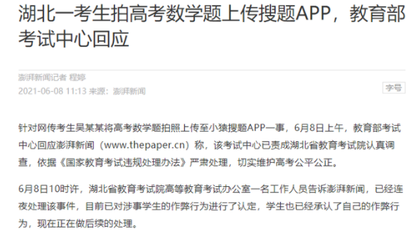 總之,這位作弊考生以一己之力震撼了在線教育界,讓所有相關搜題功能都短暫進行了關閉,也是一段傳奇了。