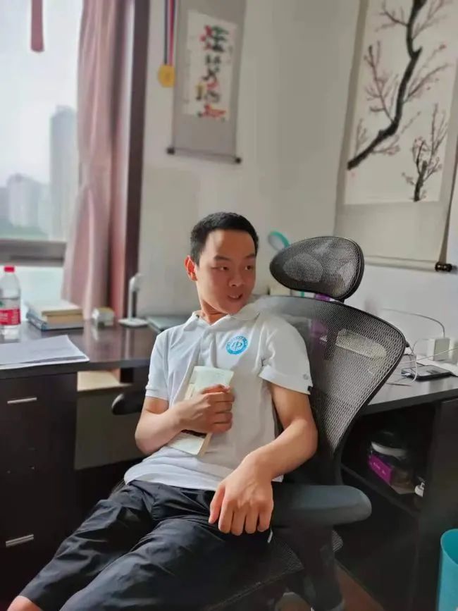 高考生汪艾韜自小患有腦癱。
