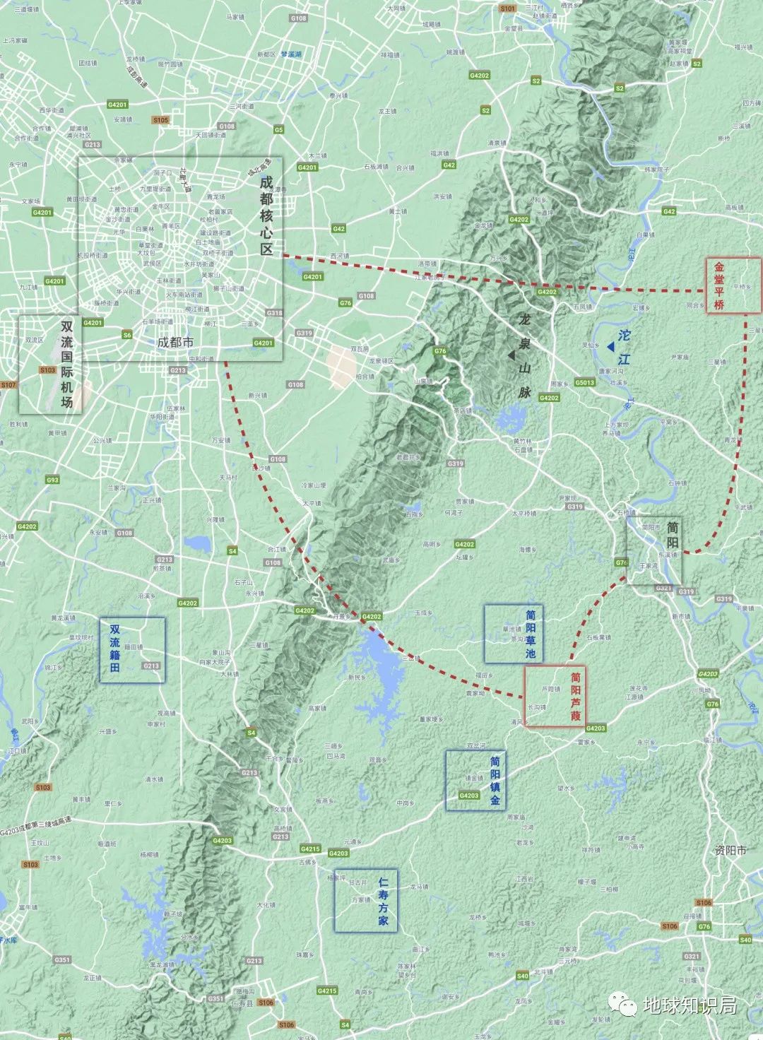 但令人意想不到的是,此次選址卻在隔年被推翻,簡陽成為了最後的贏家。成都的發展方向一下子從東北轉向東南,也就是為了天府新區。