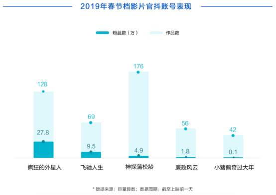 此後,《超時空同居》《地球最後的夜晚》等中等體量影片的抖音營銷也獲得了成功。到了2019年春節檔,八部影片中有五部均在抖音平台開通了官抖。《唐人街探案2》的角色唐仁、秦風還在抖音還開設了“個人賬號”,讓抖音徹底坐穩了電影營銷一線。