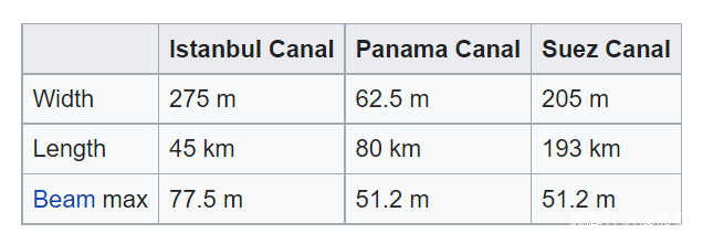 伊斯坦布爾運河長約45公里,深度20.75米,河沿寬度360米,河底寬度275米,可通過的船隻比巴拿馬運河和蘇伊士運河都大,將大大舒緩博斯普魯斯海峽的航運緊張狀況。