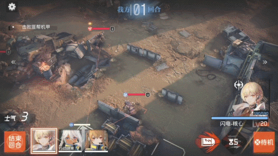 《少前2》的底層玩法採用的是美式戰棋的設計。角色除常規的屬性剋制外,還會因為場景掩體、高低落差等地形優勢,獲得攻擊buff、規避傷害的加成。合理規劃地形搶點,是這一玩法的精髓。